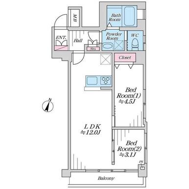 | 間取り(内訳) | 2LDK(洋4.5/3.1LDK12) | ||